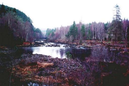 General view from big bend pool up towards the dam. Illustrates the impact of water flow restrictions on the River Garry.